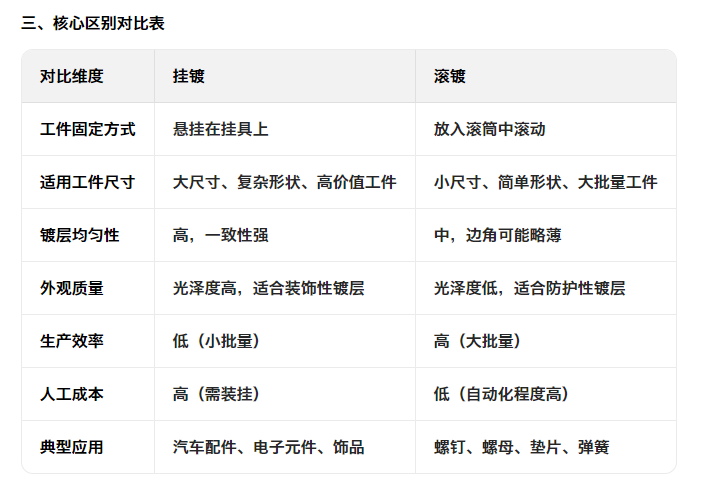 實(shí)際生產(chǎn)中,可根據(jù)工件特性、鍍層要求和產(chǎn)能需求綜合選擇,部分場(chǎng)景也會(huì)結(jié)合兩種工藝的優(yōu)勢(shì)進(jìn)行優(yōu)化。