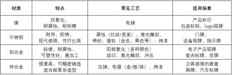 這是定制金屬標(biāo)牌的核心,常見的搭配有: