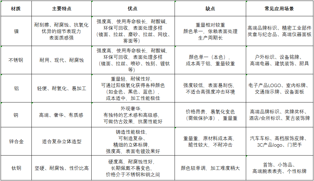 下面我為您梳理一下市面上主流的金屬標牌材質(zhì)及其特點,您可以根據(jù)自己的優(yōu)先級進行選擇。