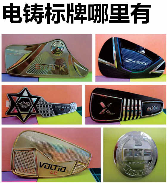 電鑄標牌是采用電化學的方法,在制有掩膜圖文的導體胎膜上快速 沉積金屬,構(gòu)成金屬的圖文薄片,將金屬薄片從胎膜上分離后,覆以不 干膠作為黏結(jié)層,即制成電鑄標牌。電鑄標配廣泛應用于適用于各種家用電器,電腦顯示器,鼠標,音響,家具,防盜門,玻璃制品,手機塑料殼,手機PU套,不銹鋼杯,皮帶口,手機,摩托車,禮品盒,鐵件,鋼琴,吉他,酒盒等工藝品上。