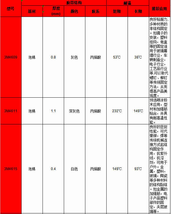 (以上分別的型號(hào)為:3M4609、3M4611、3M4615 的型號(hào),特點(diǎn)等介紹。)