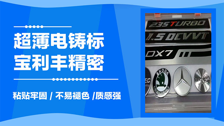 寶利豐生產(chǎn)的鎳標客戶群體主要應(yīng)用于:數(shù)碼電子、工藝禮品、企業(yè)logo、汽車鑰匙、高爾夫球桿等等,定位中高端金屬商標的制作生產(chǎn)與銷售。